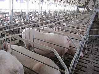 English: Smithfield Foods gestation crates, Smithfield Foods/Murphy Brown pig breeding facility, Waverly, Virginia, United States [1] |